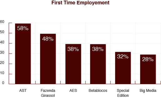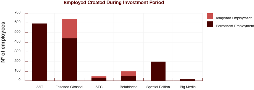 During the investment life cycle across all our investee companies, ACP have overseen the additional employment of 1,609 Individuals, which constitutes 48 percent of the total workforce currently employed. At AST, Special Edition and Big Media, these all constitute full-time employees. Full-time employees at Fazenda Girassol make up 70 percent of the company’s newly appointed workforce. At AES this number is 78 percent, with new employees brought on during the investment period at Betablocos making up 51 percent of the workforce.